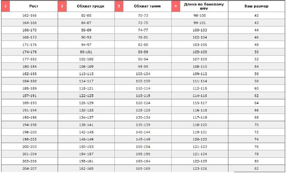 Таблица веса в соотношении с ростом для мужчин