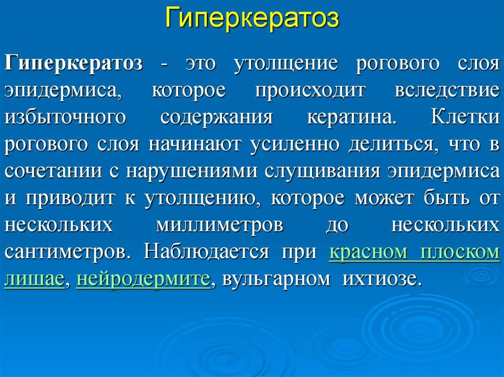 - гиперкератоз (нарушение нормального процесса отшелушивания кожи);