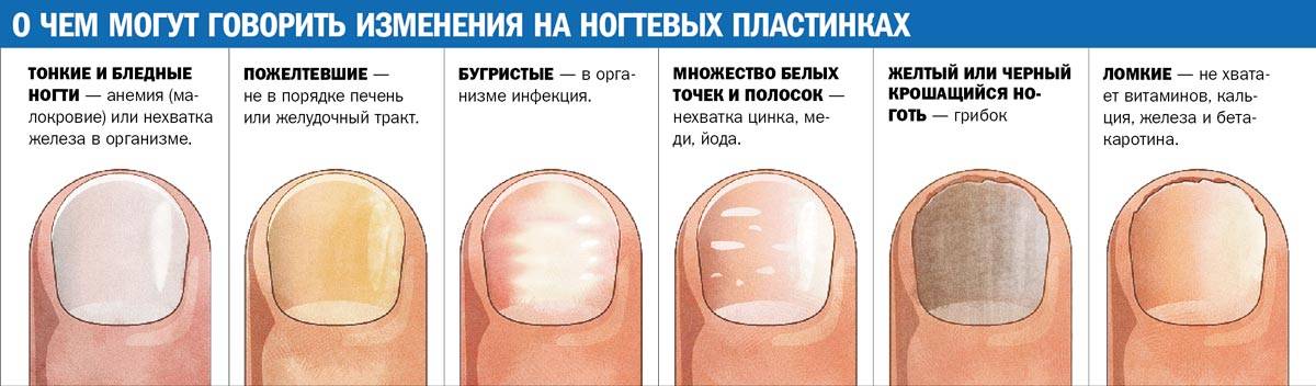 • Отсутствие лунул – нехватка витаминов группы В и анемия;