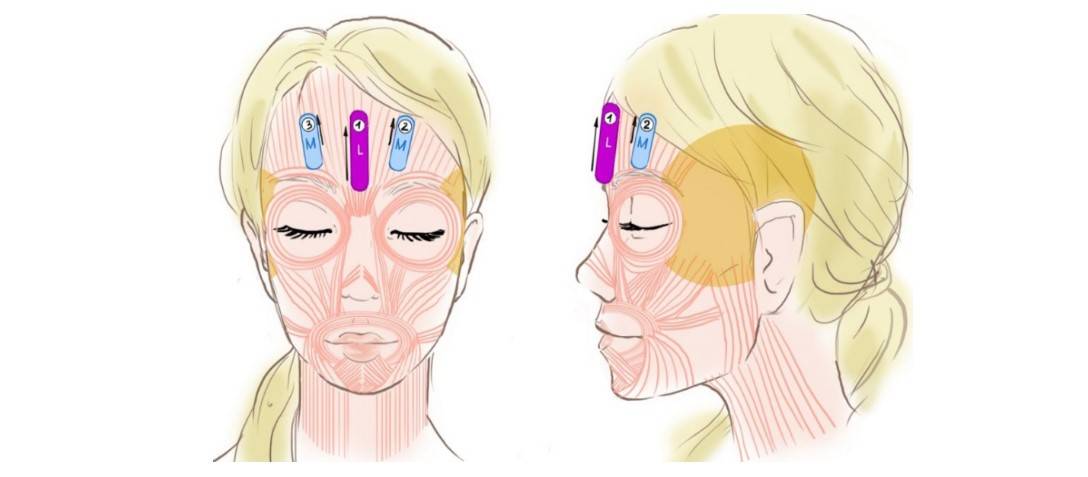 Аппликация в области лба. Убираем вертикальные и горизонтальные морщины