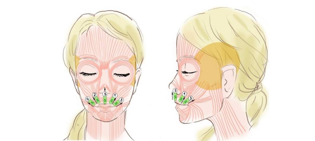 Тейпирование лица — схема подтяжки обвисших щек и сглаживание носогубки у женщин после 30 лет