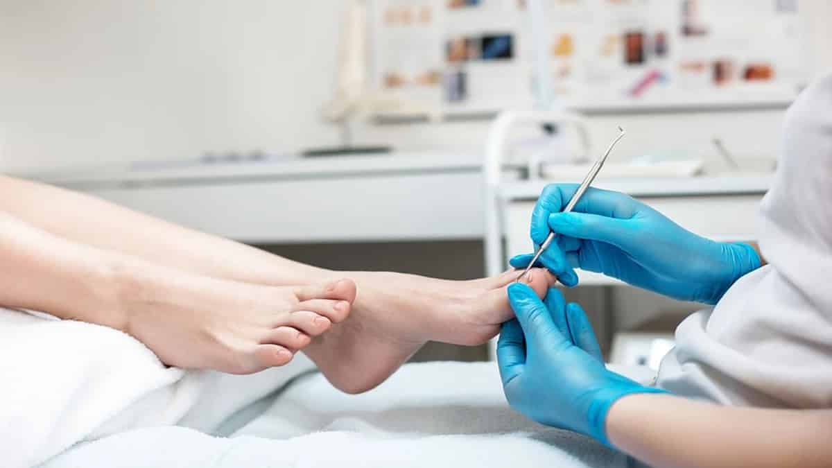 - Обработка поверхностей стоп и ногтей антисептическим средством.