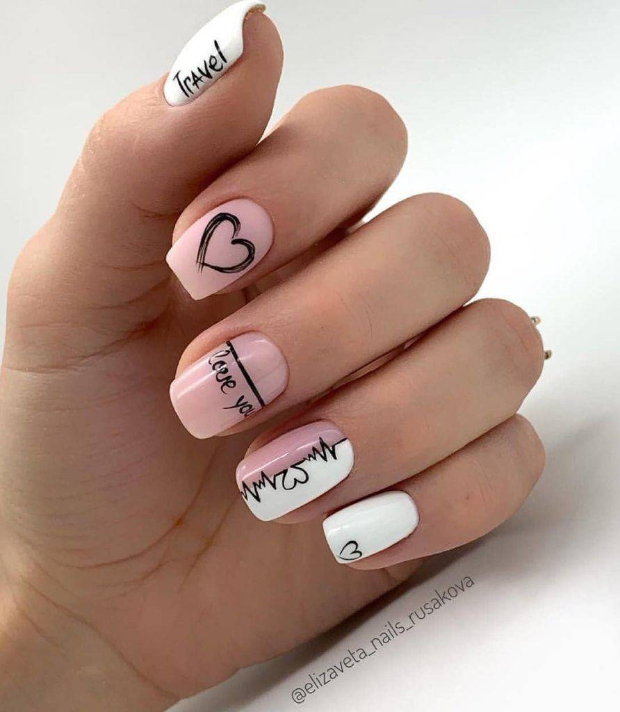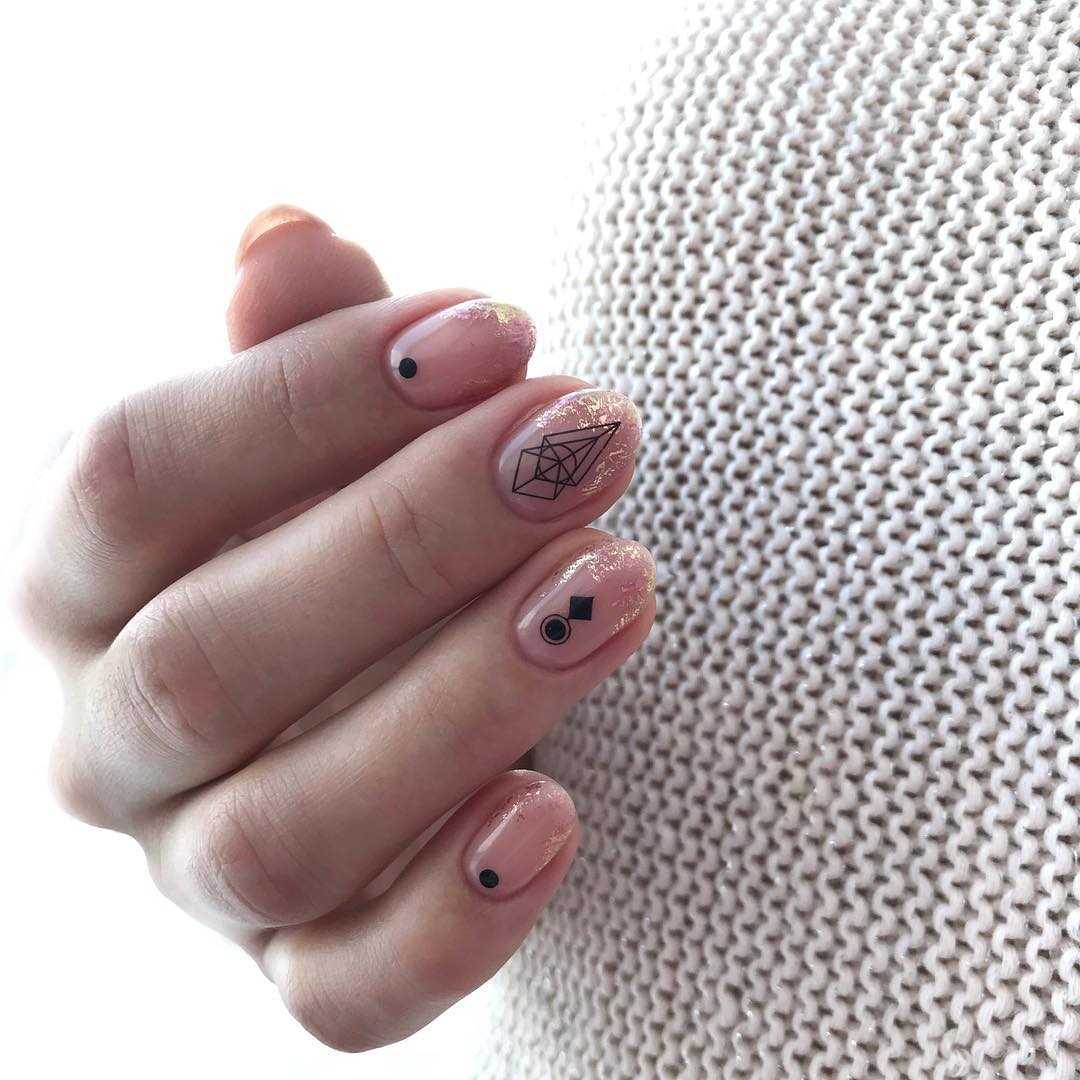 Nail art с геометрией, выполненной белым или черным цветом на пастельной основе, природные текстуры