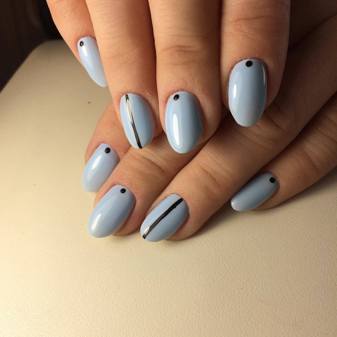 Минималистические приемы на ногтях в виде точек, единичных фигур, завитков, полосочек