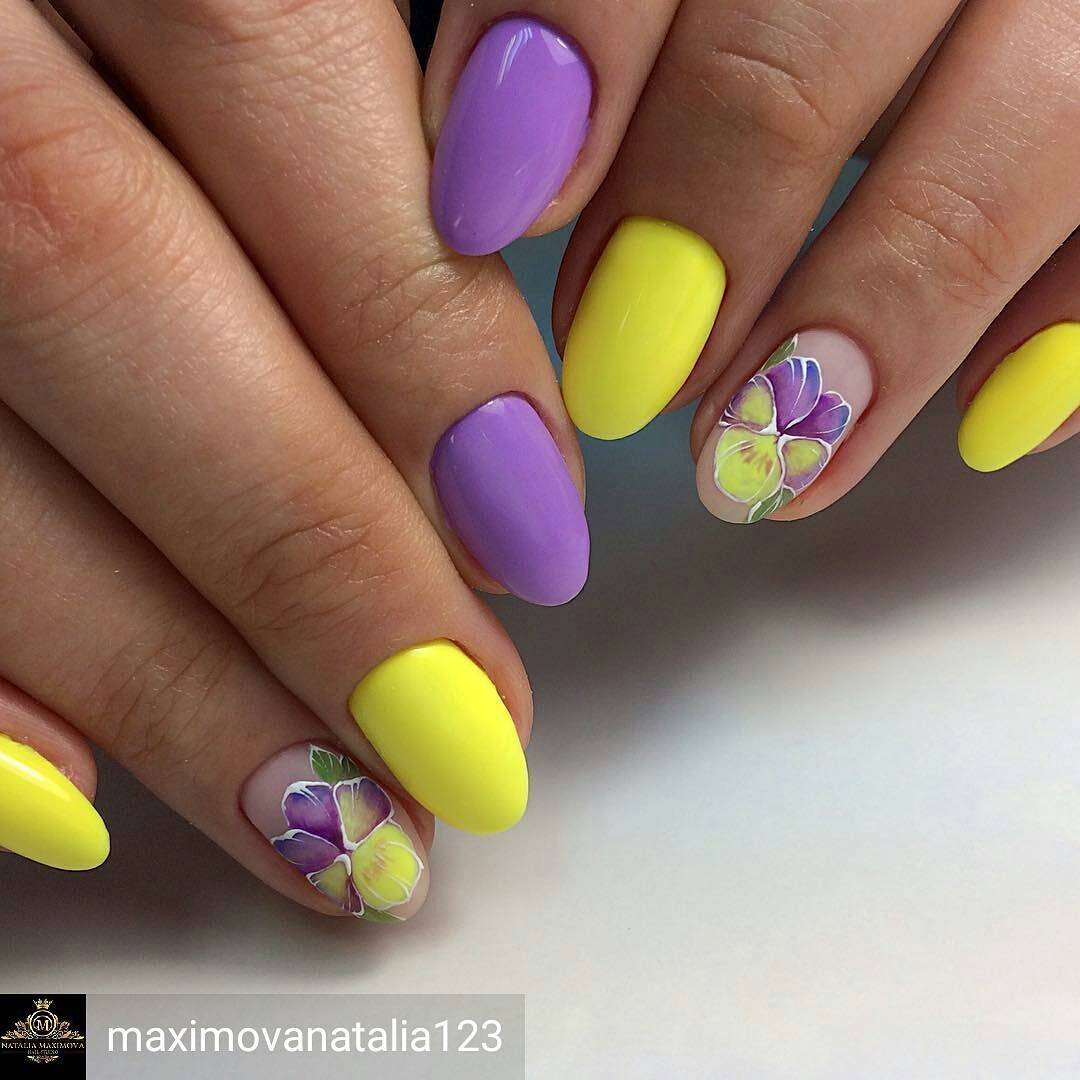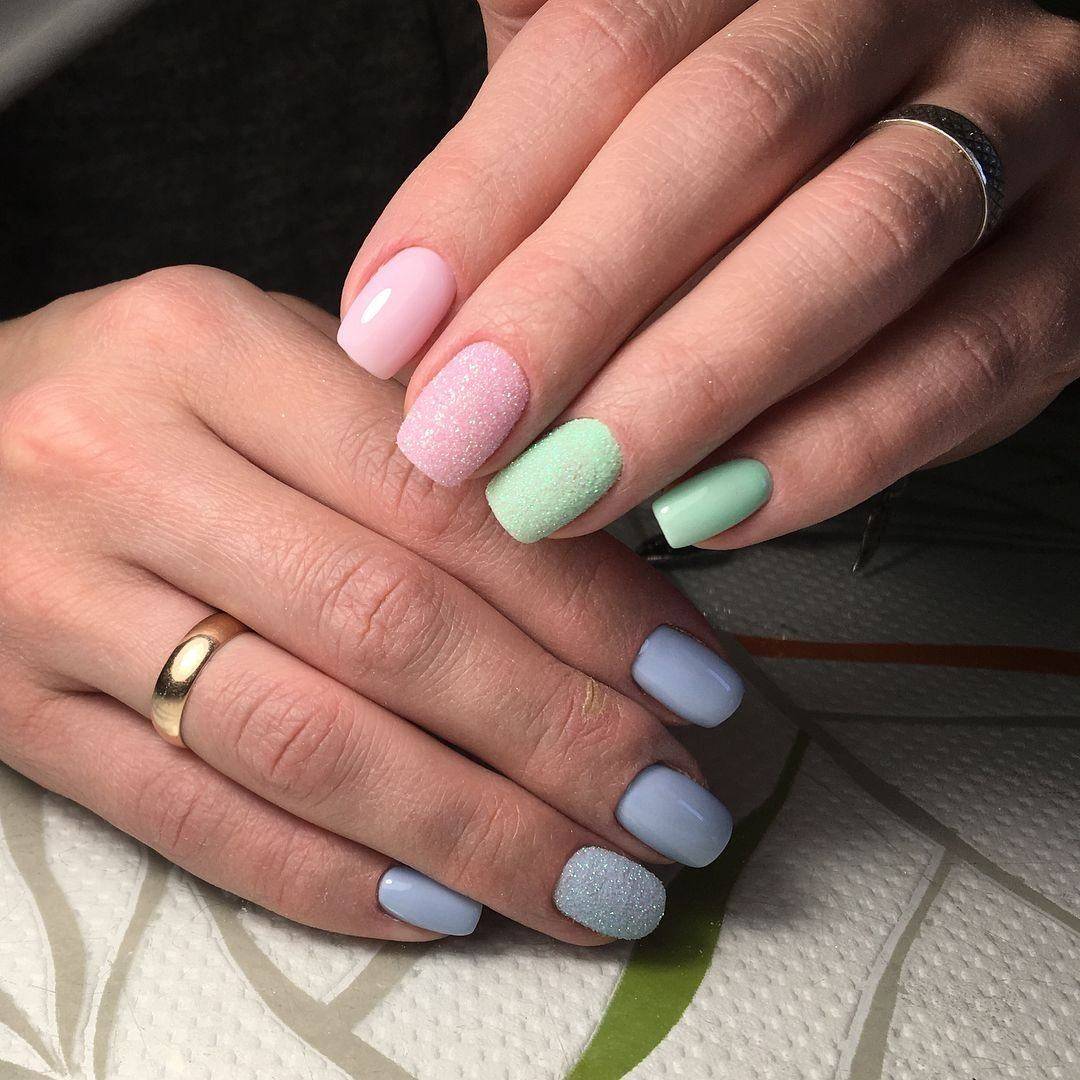 Также можно выполнить яркий маникюр весна с разными оттенками лака на каждом пальчике, или же применив технику «color block», сочетая самые невероятные оттенки лака в одном маникюре.