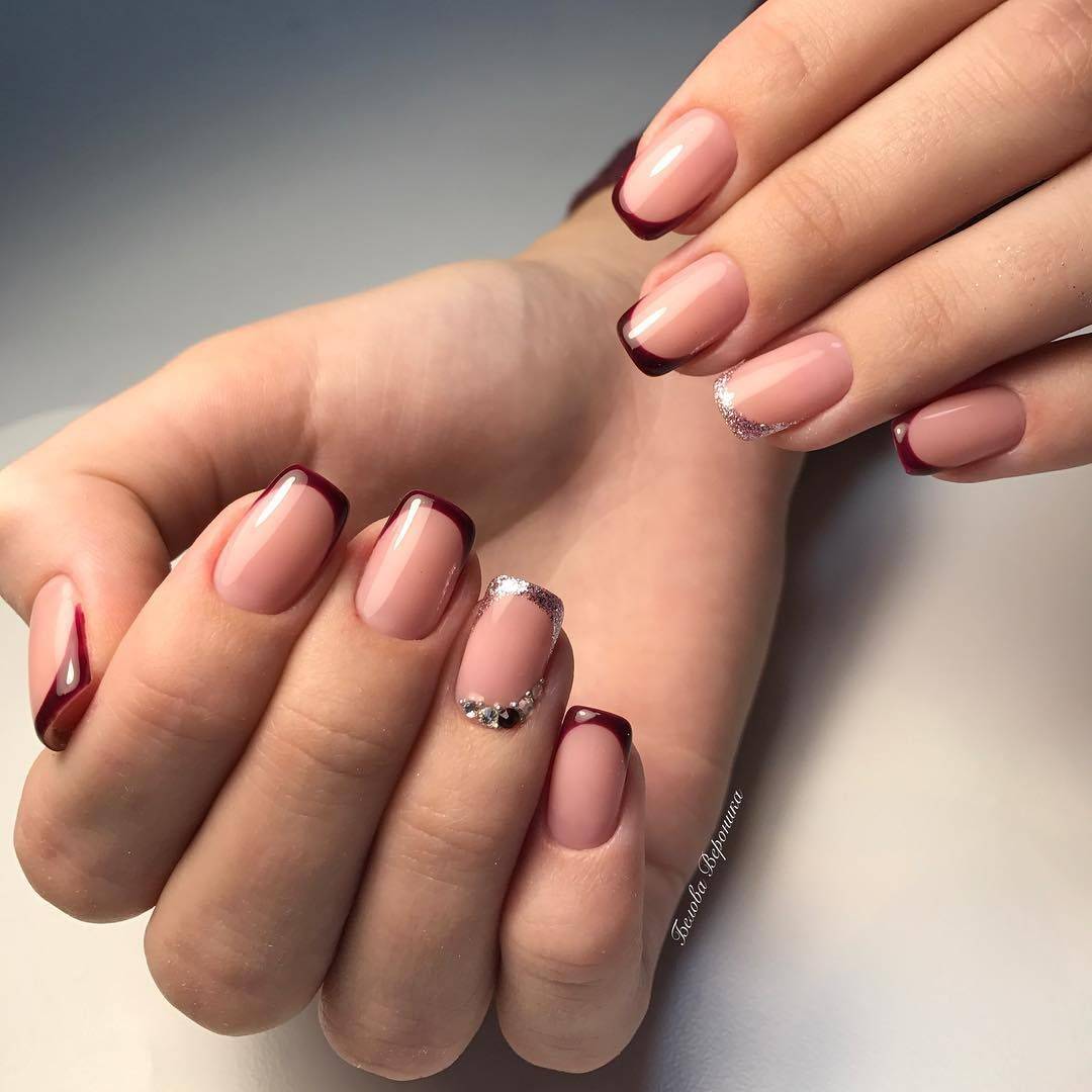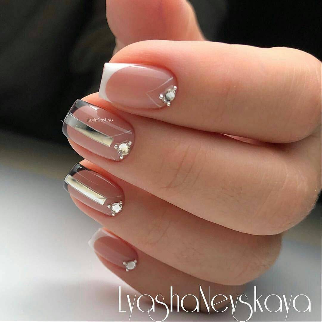 Удачно сочетая цвета можно создавать маникюр во французском стиле или стильный лунный маникюр. При этом для придания маникюру весна 2020 г. большей торжественности, «улыбку» можно выложить яркими стразами.