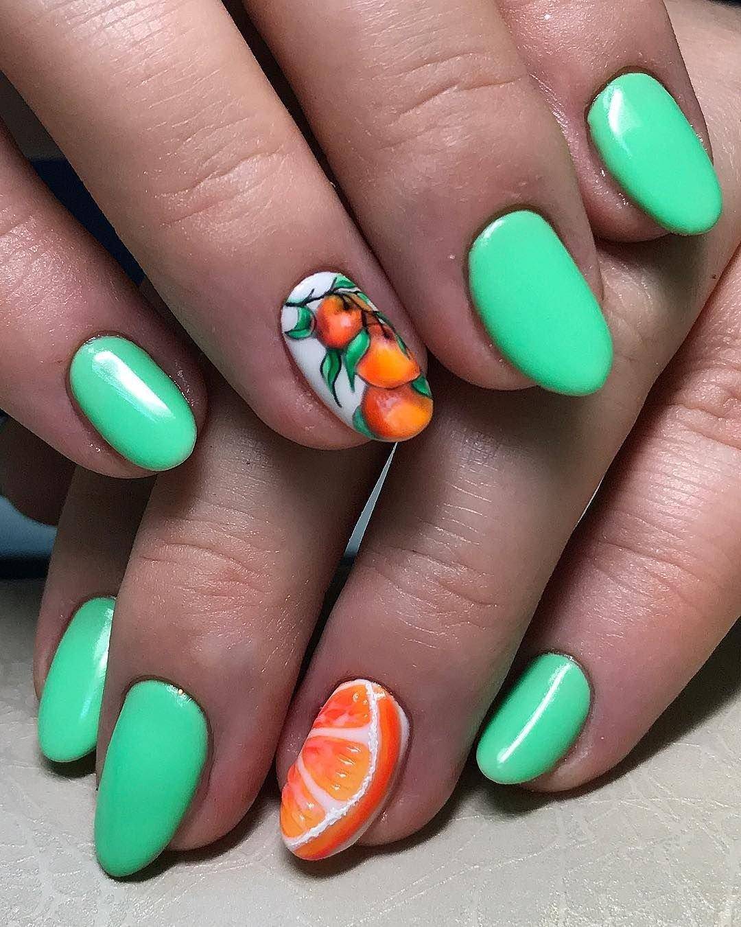 В качестве дизайна весеннего маникюра можно использовать наклейки с фруктами, что выглядит очень красочно и оригинально или наклейки со зверушками и цветками. Также и рисунки «геометрия» в необычном исполнении с яркими гель лаками очень даже оригинальны, если приноровиться и подобрать красивую идею дизайна.
