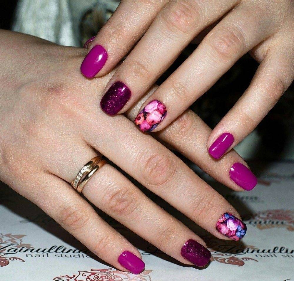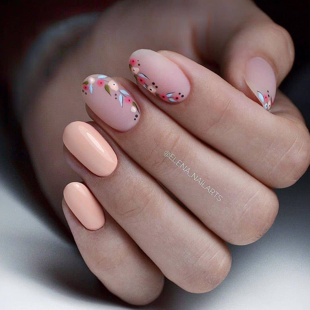 Креативным решением является весенний маникюр «разные руки», где на одной из ручек будет красивый цветочный узор, на на другой однотонный нейл-арт в глянцевом или матовом исполнении.