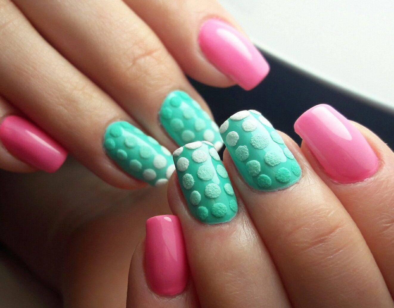 - polka dots. Ноготки в горошек моментально делают настроение игривым. И нет, это не признак инфантилизма, это просто яркое дополнение к вашей личной весне.