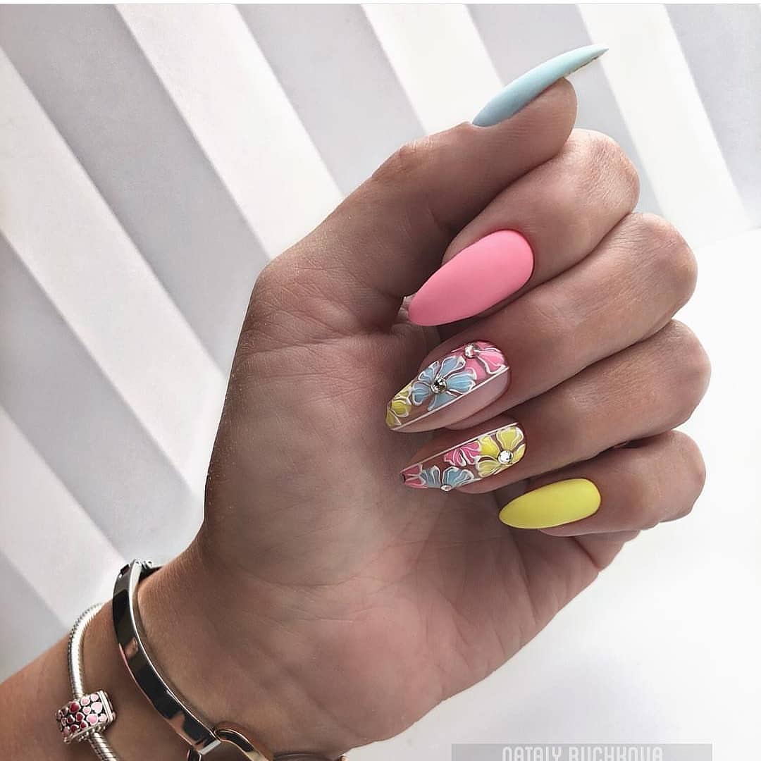 #7 Весенний маникюр «разные ручки»: яркий дизайн весны 2020