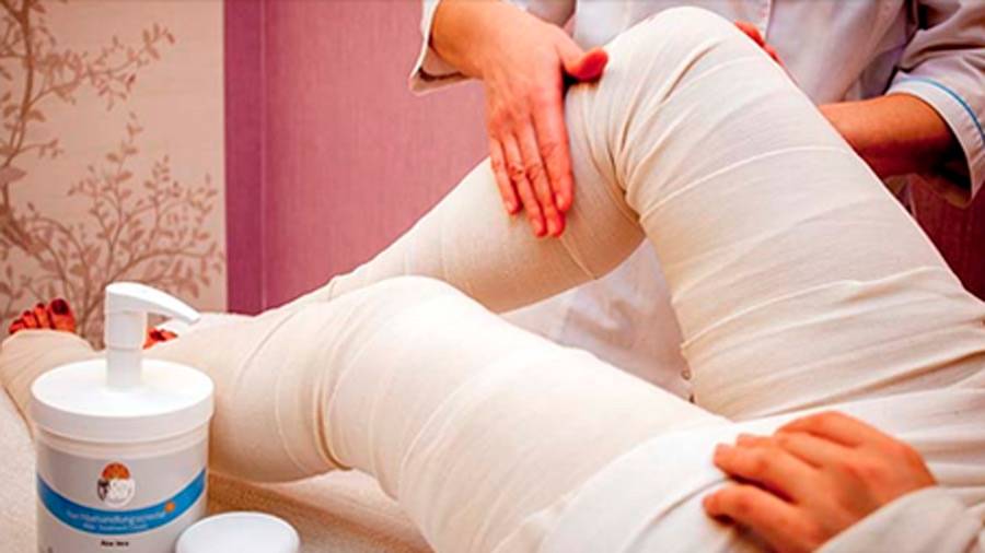 Процедура предполагает обёртывание всего тела бандажами, пропитанными специальным составом с растительными ингредиентами, которые сверху заматываются плёнкой.