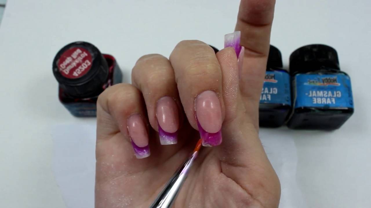 Оформите кончик ногтя витражными акриловыми красками и закрепите обычным прозрачным лаком. Также можно использовать упомянутые выше блестки и слюду. Талантливым художникам будет под силу изобразить красивый узор. Постарайтесь добиться максимальной прозрачности края ногтя, чтобы ваш витражный маникюр был приближен к оригиналу.