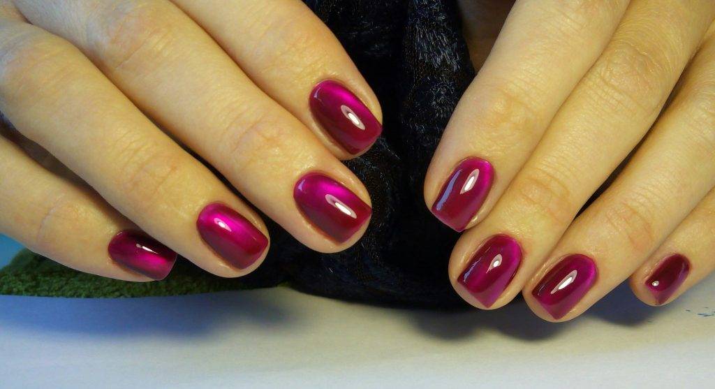 Такой лак так же прекрасно сочетается с не теряющим своей популярности «Кошачьим глазом», позволяя придать маникюру больше глубины и объема.