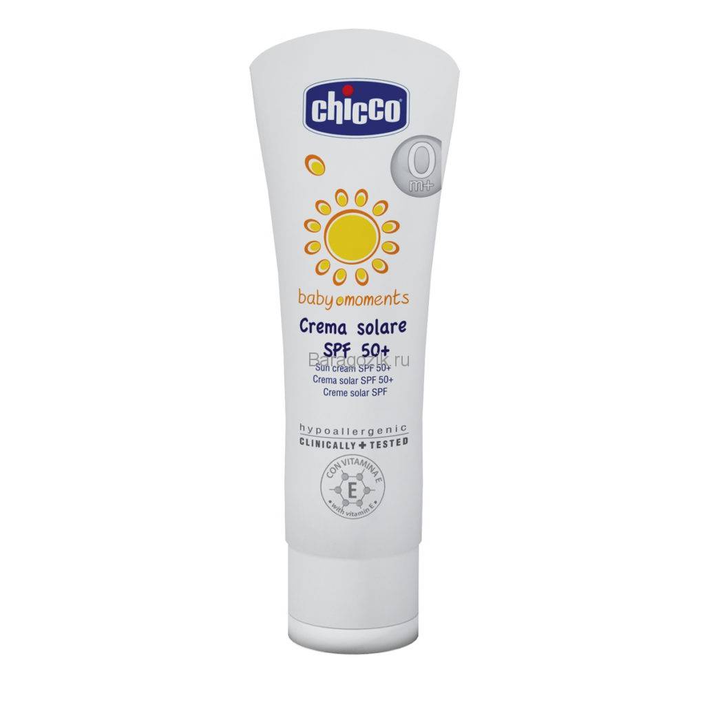 Страна-производитель – Италия. Крем Chicco SPF 50 прекрасно впитывается, не содержит в своем составе вредных компонентов, спиртов, красителей. Крем не имеет запаха, прекрасно впитывается, содержит UVA и UVB фильтры. Предназначен этот крем для малышей от шести месяцев и старше. В состав крема входит витамин Е, который смягчает кожу. Крем подходит для абсолютно любого типа кожи.