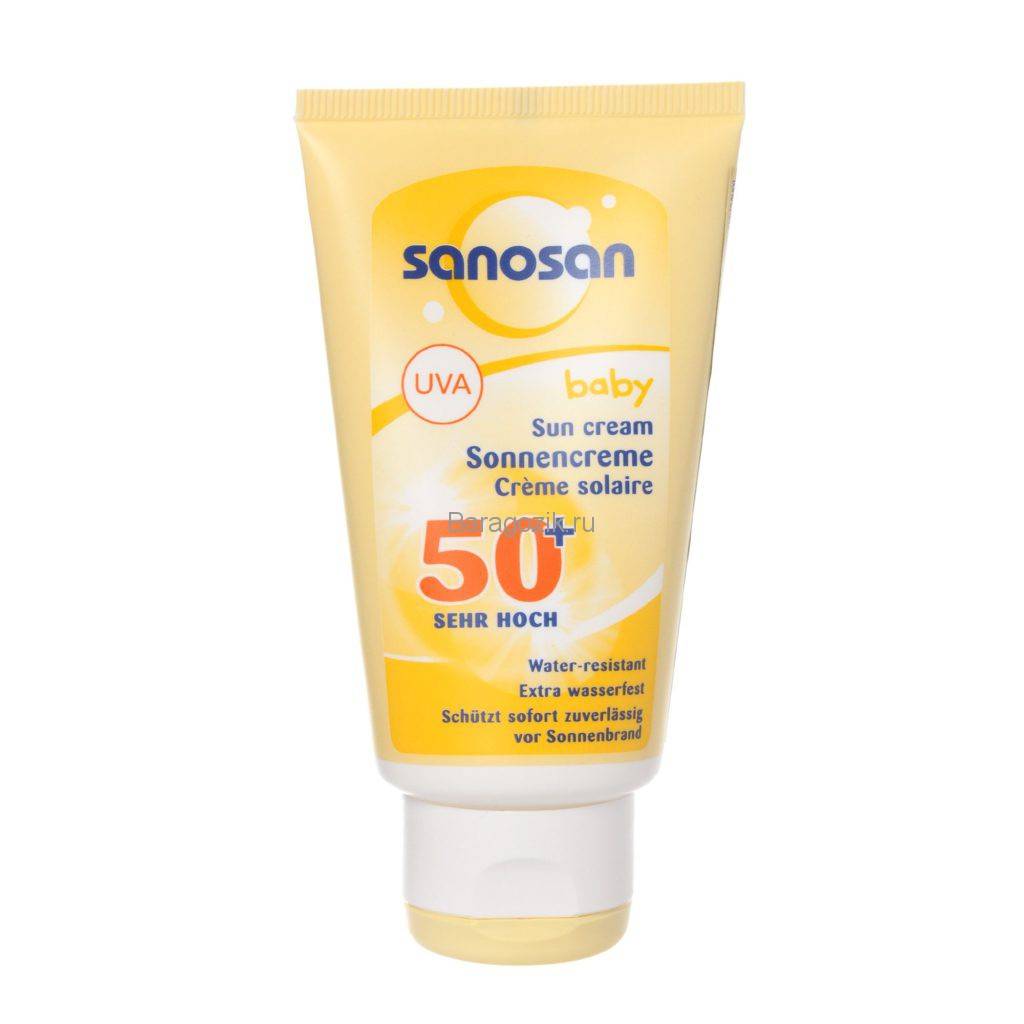 Детский крем Sanosan с солнцезащитным индексом SPF 50 прошел дерматологическую экспертизу. Крем является эффективным и безопасным. Подходит для детей от шести месяцев и старше. Крем обеспечивает защиту от неблагоприятного воздействия UVA/UVB.